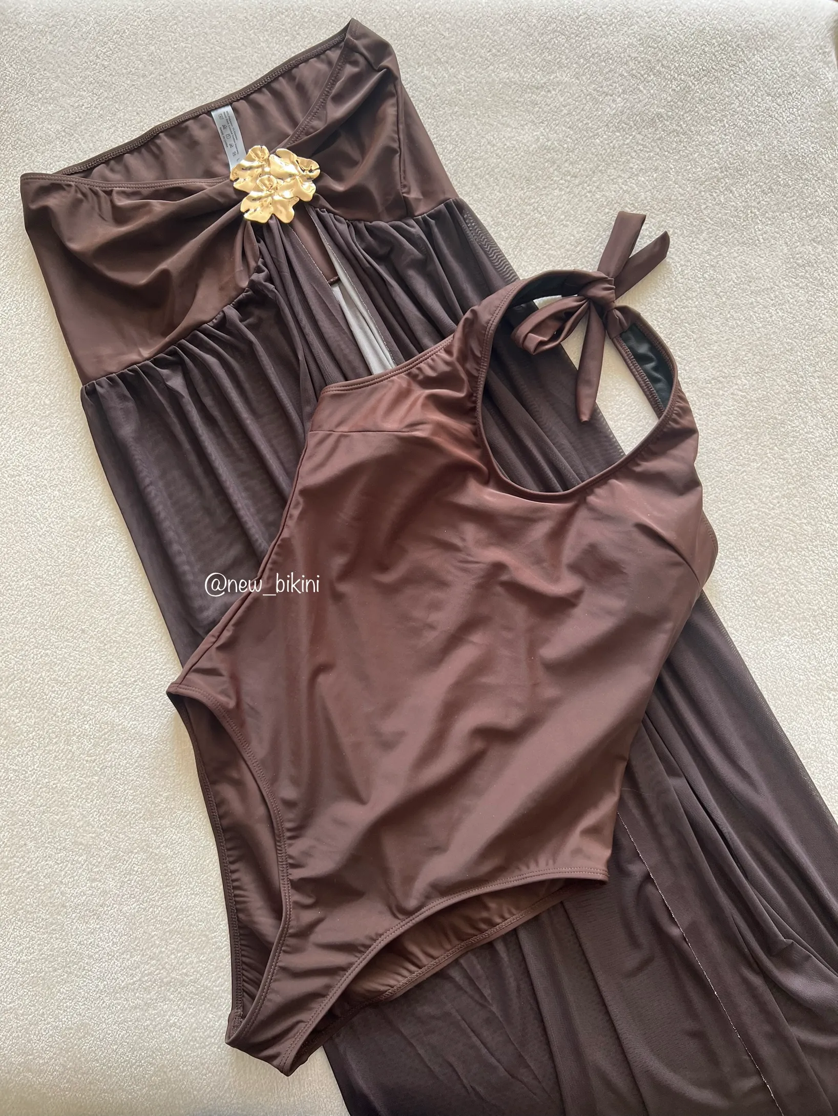 مایو یکسره قهوه ای با رومایویی کد 684