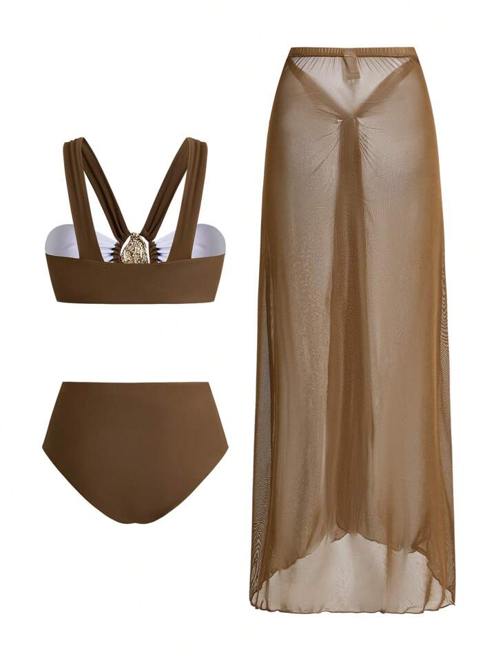 برای ماندگاری بیشتر، شستشو با آب سرد و شوینده ملایم توصیه میشود و بهتر است از فشردن یا کشیدن بیش از حد پارچه خودداری کنید. خشککردن در سایه باعث میشود رنگ قهوهای درخشان و یکنواخت بماند و بافت پارچه شکل اولیه خود را حفظ کند. این ست سهتکه از برند Shein با کیفیت انتخابشده در نیو بیکینی ارائه میشود و با توجه به ترکیب کاربردی، طراحی حرفهای و راحتی بالا، گزینهای مناسب برای استفاده در ساحل، استخر و سفرهای تابستانی است. این محصول علاوه بر ظاهر زیبا، از نظر دوام و استاندارد ساخت نیز قابل اعتماد است و انتخابی مطمئن برای استفاده طولانیمدت بهشمار میآید.