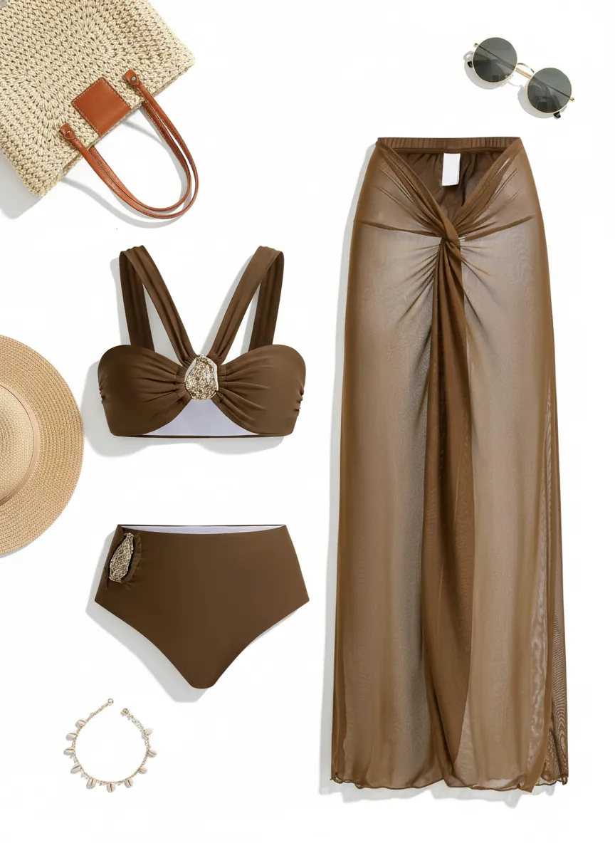 مایو قهوهای 3 تکه یک انتخاب کامل برای افرادی است که بهدنبال ست شنا با طراحی هماهنگ، کیفیت بالا و کاربرد چندمنظوره هستند. این مدل شامل بالاتنه با کاپ متحرک، شورت فاق بلند و یک رومایویی سبک و خوشفرم است که در کنار یکدیگر ظاهری منسجم و جذاب ایجاد میکنند. رنگ قهوهای بر پایه تونالیتههای طبیعی انتخاب شده و جلوهای متفاوت، گرم و شیک به استایل ساحلی یا استخر میدهد. پارچه مورد استفاده مطابق استانداردهای لباس شنا بوده و در برابر کلر، نمک و نور خورشید مقاومت خوبی دارد و روی پوست حس نرمی و لطافت ایجاد میکند.
